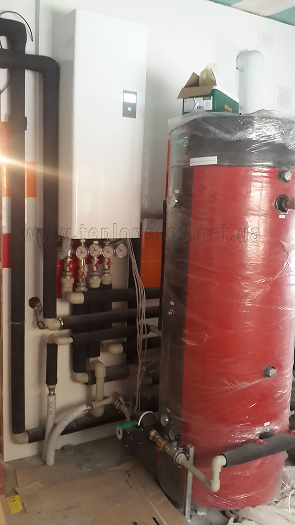 Организован нагрев ГВС с помощью теплового насоса посредством косвенного водонагревателя Drazice 300 л.