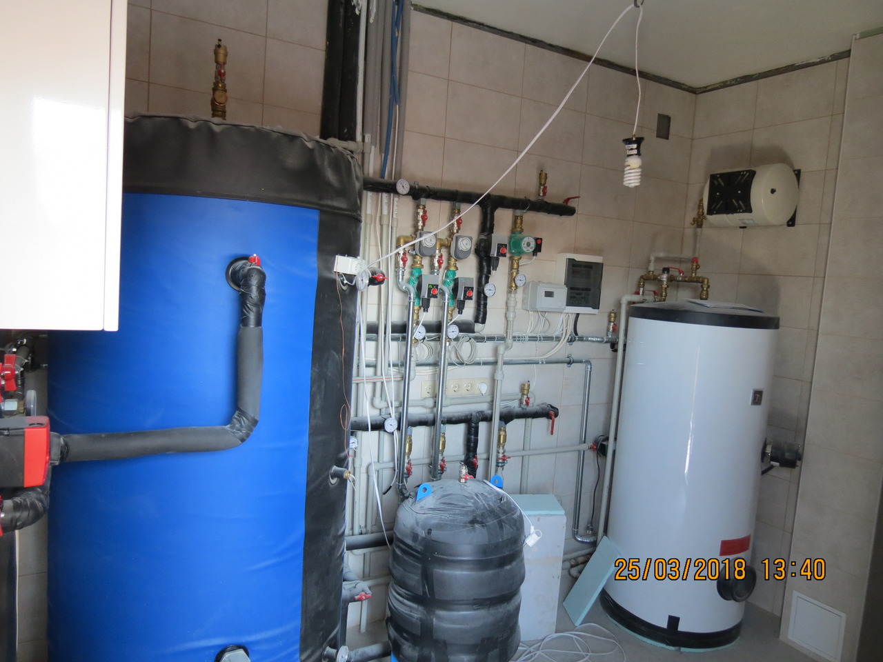 Що було зроблено: змонтований тепловий насос та повністю котельня. Об'єм системи опалення збільшений на 800 л за допомогою бака-акумулятора.